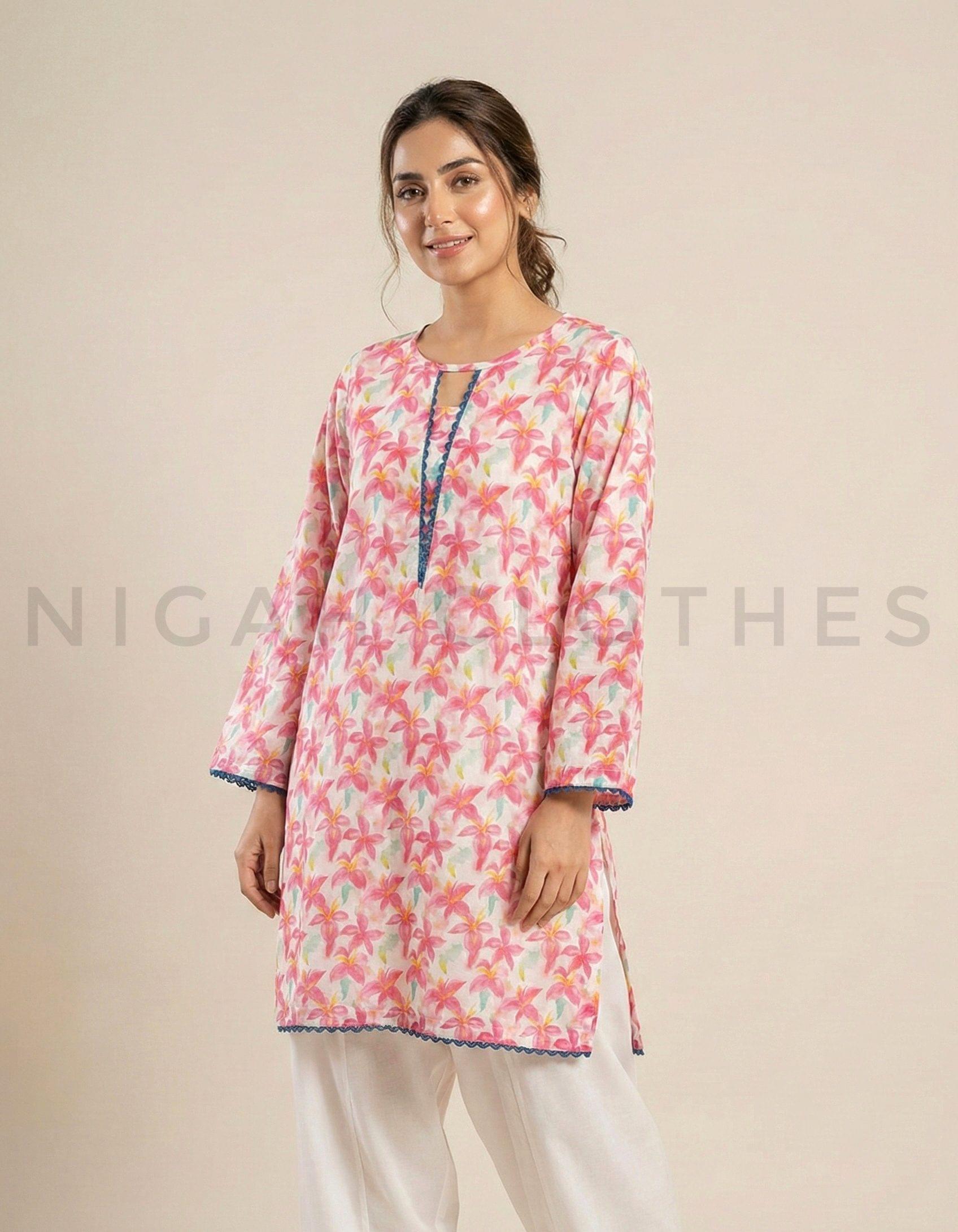 Made from soft lawn fabric, this Eastern kurti blends comfort and simplicity for a refined everyday look.